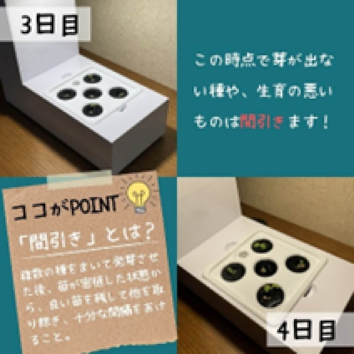3~4日目:生育が悪いものがないか確認を行いました。