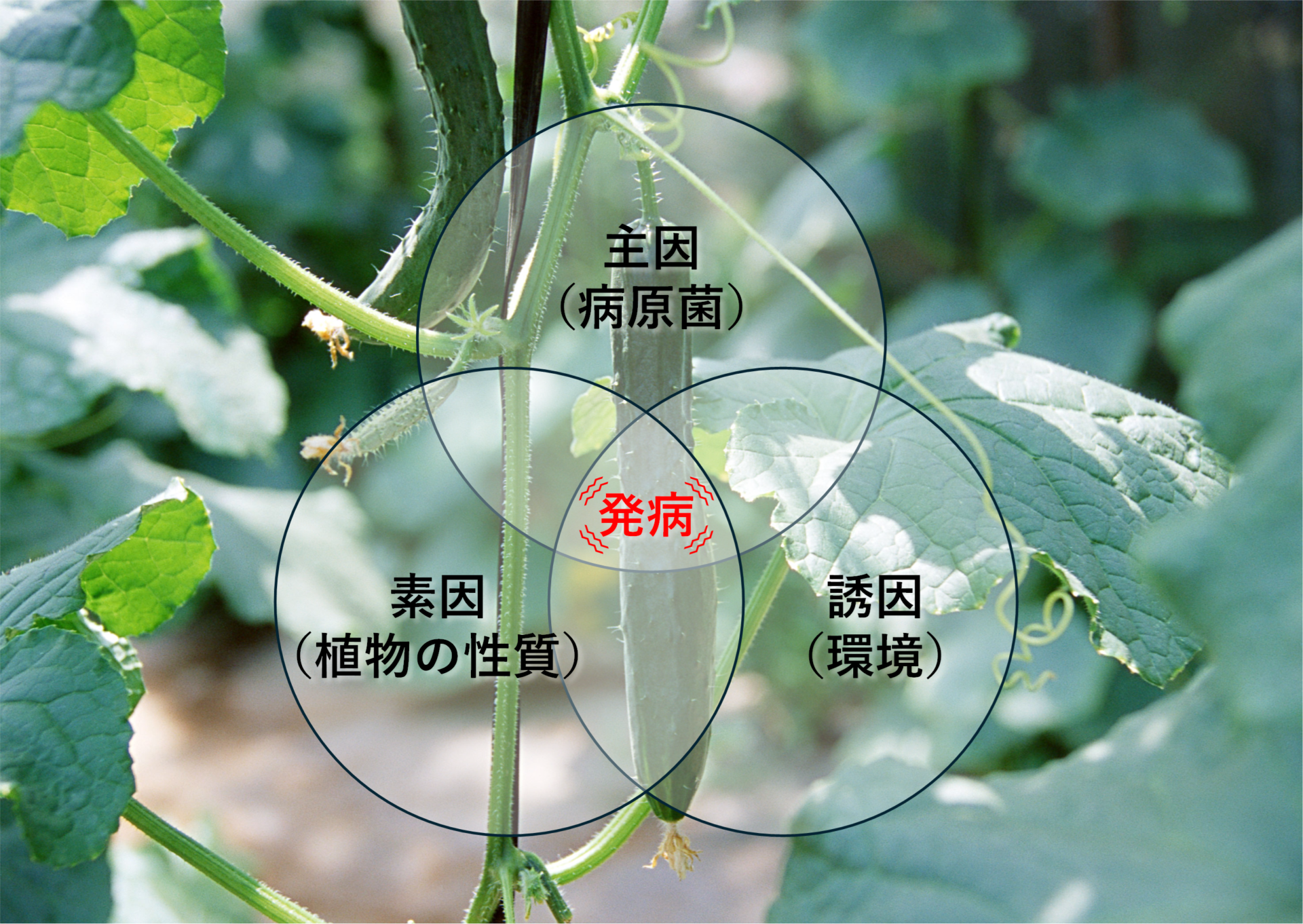 誘因(環境): 植物を取り巻く「環境」のことです。人間なら「寒くて乾燥した部屋」にいると風邪を引きやすくなります。植物の場合は、「ジメジメした湿気」や「日当たり不足」などが病気になりやすい環境となります。