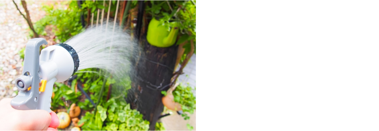 また、外のホースで水やりを行う場合、ホース内に残った水がお湯になってしまっていることがありますので、必ず出た水が冷たくなっていることを確認してからあたえるようにします。