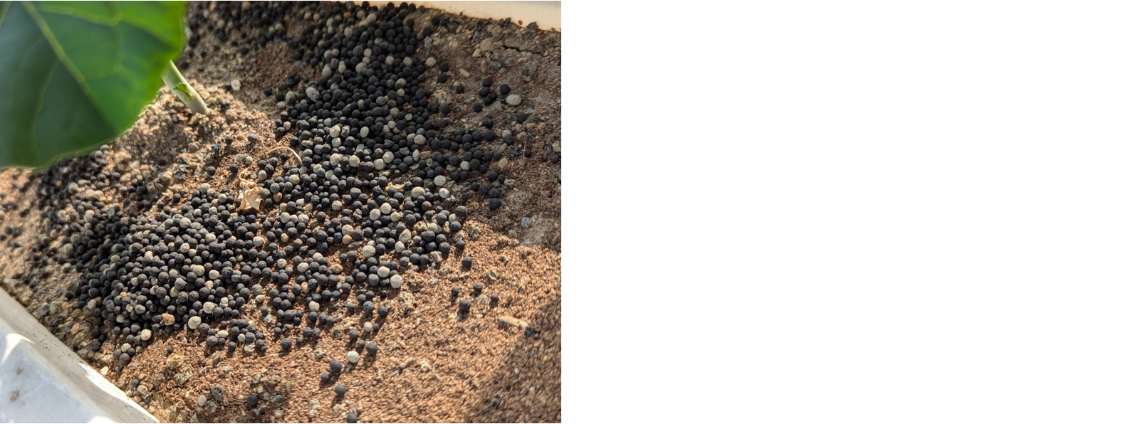 実験として、左端の1プランターのみ他のプランターの10倍量パラっと有機元気野菜をあたえてみました。