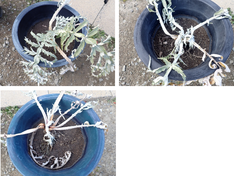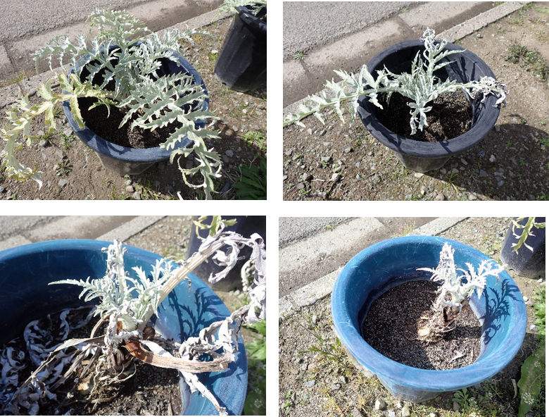 地上部が枯れていても地下部が生きていれば、春にまた芽を出すそうなので、諦めずに栽培を続けていきます。