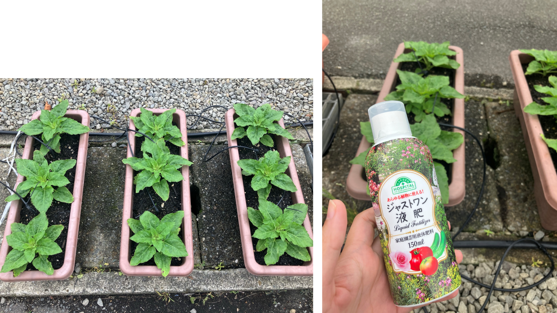 本日、ジャストワン液肥300倍希釈液をあたえました。