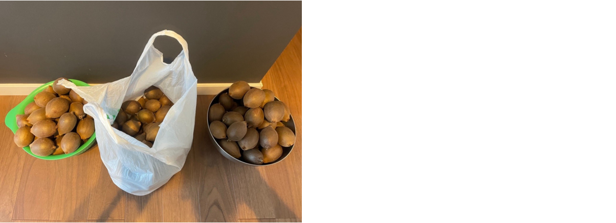 収穫後、りんごを使って熟成させてみましたが、あまり甘くなりませんでした…。実をつけすぎてしまったのでしょうか。来年はもう少し少ない数になるように調整しようと思います。
