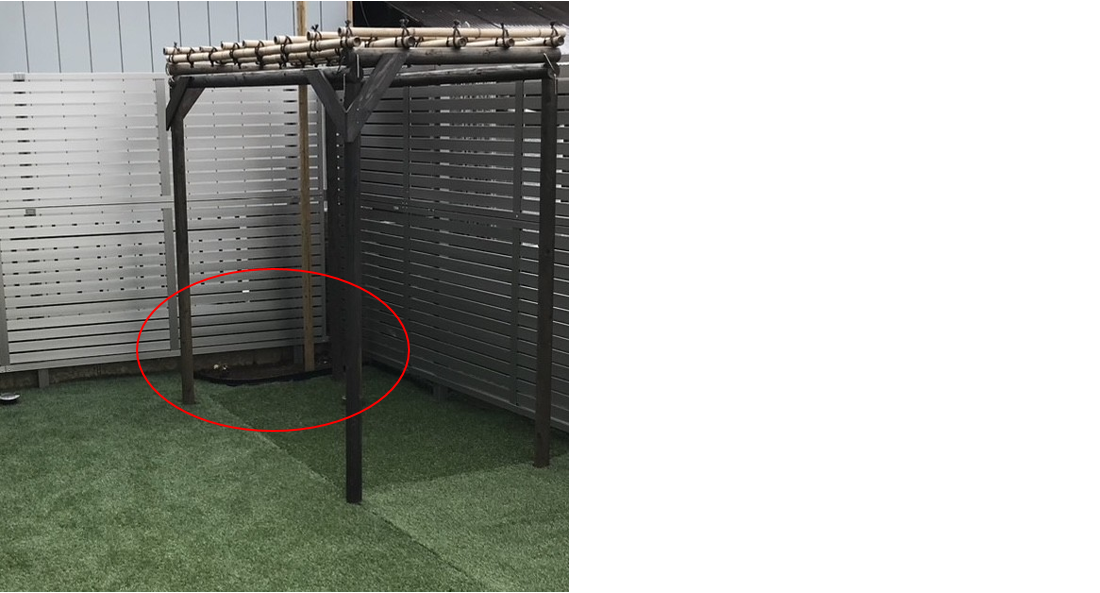 キウイフルーツを栽培するための棚を準備し、木を這わせることができるように赤丸の位置にネットで購入した苗木を定植しました。