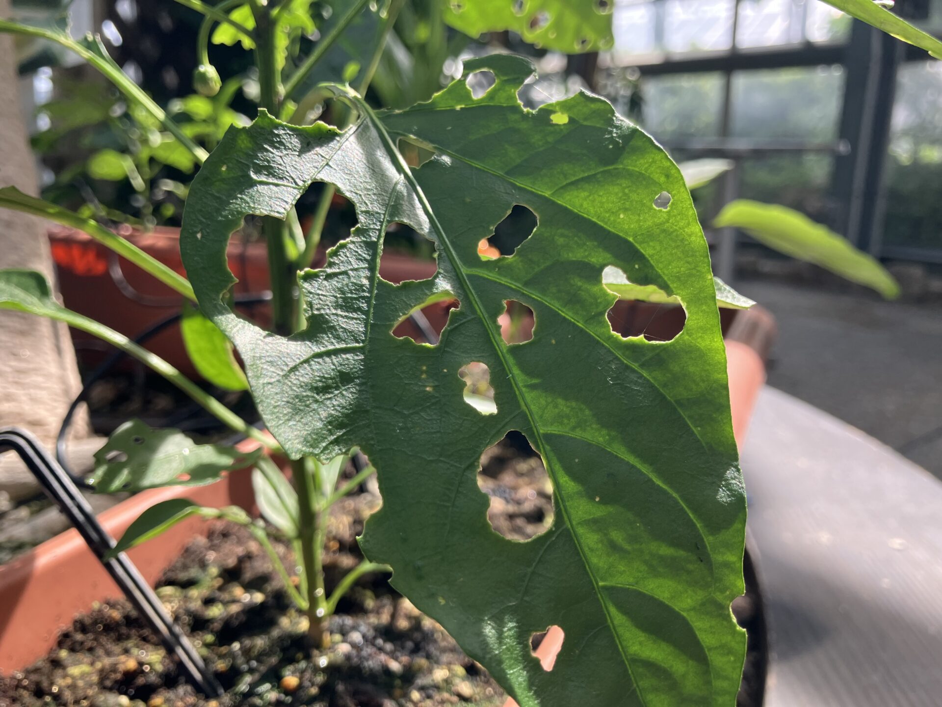 陸上に生息する貝の仲間で、野菜や果樹の葉を食害します。天気の良い昼は植木鉢の裏や石影などに隠れていて、雨天や夜になると活発に活動します。