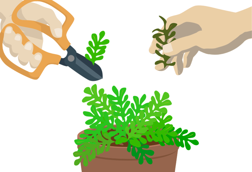 - 暖かくなってくると、枯れ葉や傷んだ葉から病気が発生することがあります。見つけたら取り除いて発生を予防するようにします。また、葉が生い茂って混み合ってきたら剪定を行うと良いです。