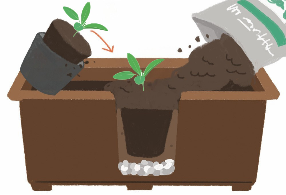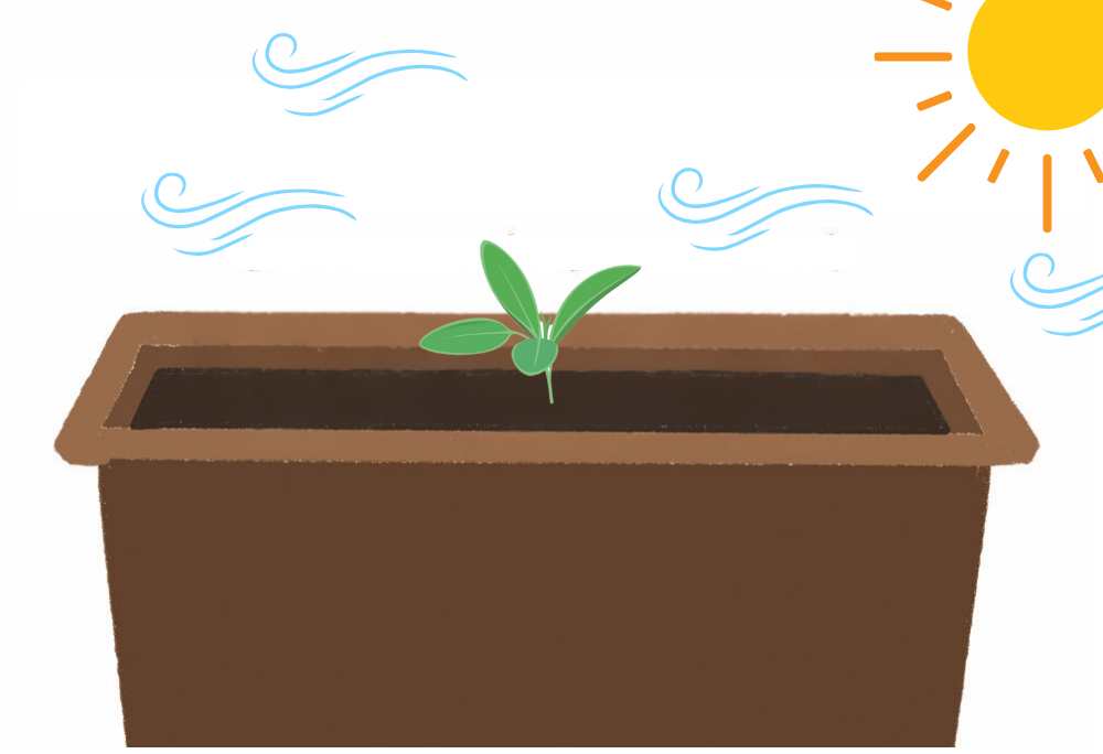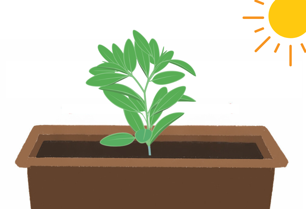 多く発芽して苗が混んでいる場合は、間引きを行います。本葉が3~4枚になったら、植え付けを行います。プランターに鉢底石を入れて、ハーブ用の培養土を8分目くらいまで入れたら、移植ゴテで苗と同じくらいのサイズの穴を掘り、苗をやさしく入れ、すき間を培養土で埋めます。最後に底から水が出るくらいにたっぷり水やりをしましょう。セージは大きく生長する植物のため、プランターに1株が目安です。
