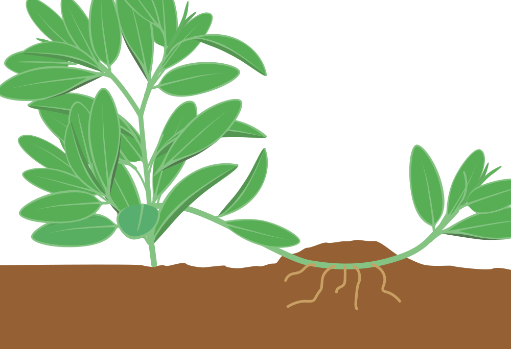 地面に茎を伏せて、途中の部分に土を盛り、根が出るのを待ちます。根が生えたら、切り離して新しい鉢に植え付けましょう。根が生えるまでの期間は、1カ月程度が目安です。