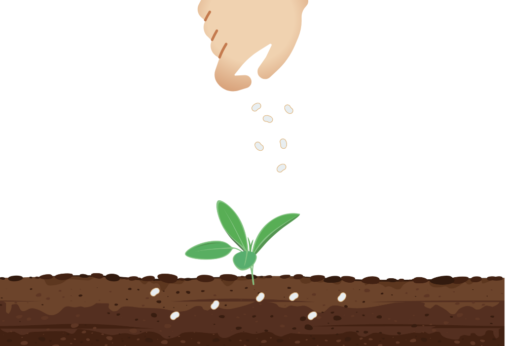 ポリポットにハーブ用の培養土を詰め、種が重ならないようにばらまきます。セージの種は発芽率が低めなので、多めにまくようにしましょう。好光性種子のため、覆土は薄くします。(深く植えると芽が出ません。)最後に水をあたえますが、種が小さく浮きやすいため、ジョウロで優しく水やりを行うか、霧吹きで土を湿らせるのもオススメです。