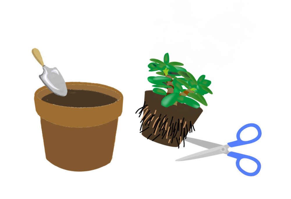様子を見ながら、2~3年に一度の頻度で、ひと回り大きなサイズの鉢に植え替えます。時期は4~6月、9月頃がオススメ。鉢から出して根の土をほぐし、黒に変色した根は清潔なハサミで切り落とします。根がよく広がるように新しい土を入れた鉢に移し、底から出るくらいたっぷり水をあたえます。1週間ほどは半日陰で管理するようにしましょう。