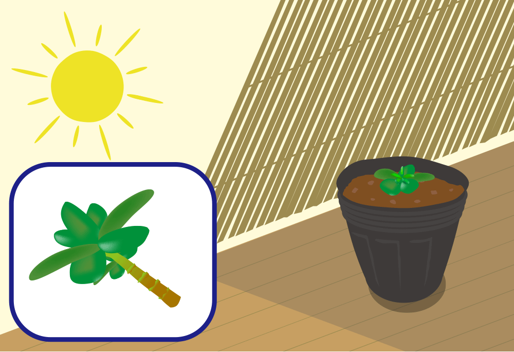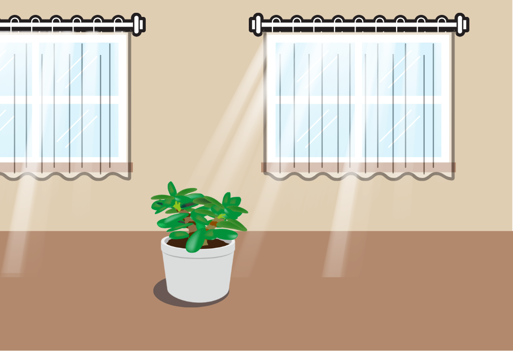- 日当たりの良い場所を好みますが、強い直射日光に当たると葉焼けする可能性があるため、夏場は明るい日陰、もしくはレースカーテン越しに日が当たるような場所がオススメです。