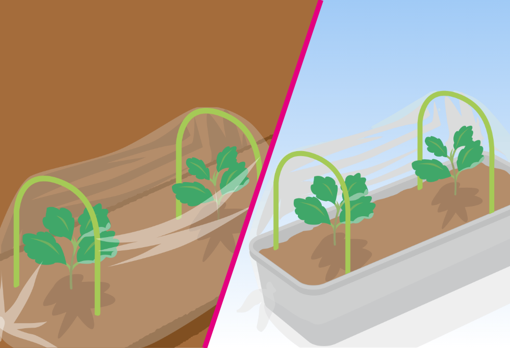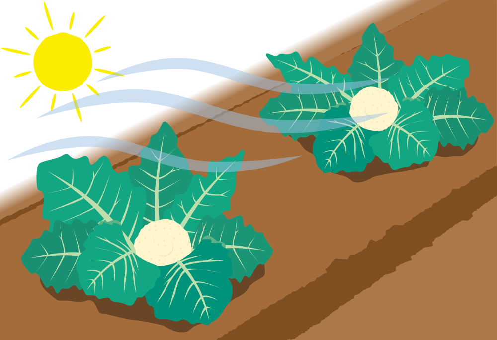 - 生育初期に低温にさらされると十分に株が生長しないうちに花芽が形成されてしまい、小さな花蕾になります。定植期に温度が確保できない場合はトンネルなどで保温しましょう。