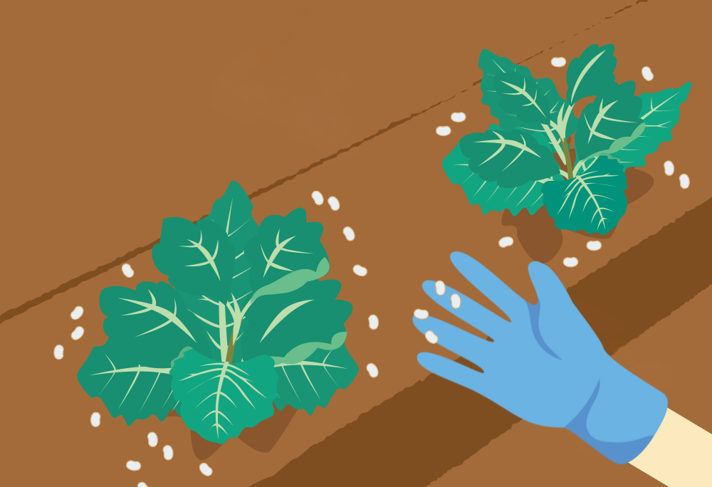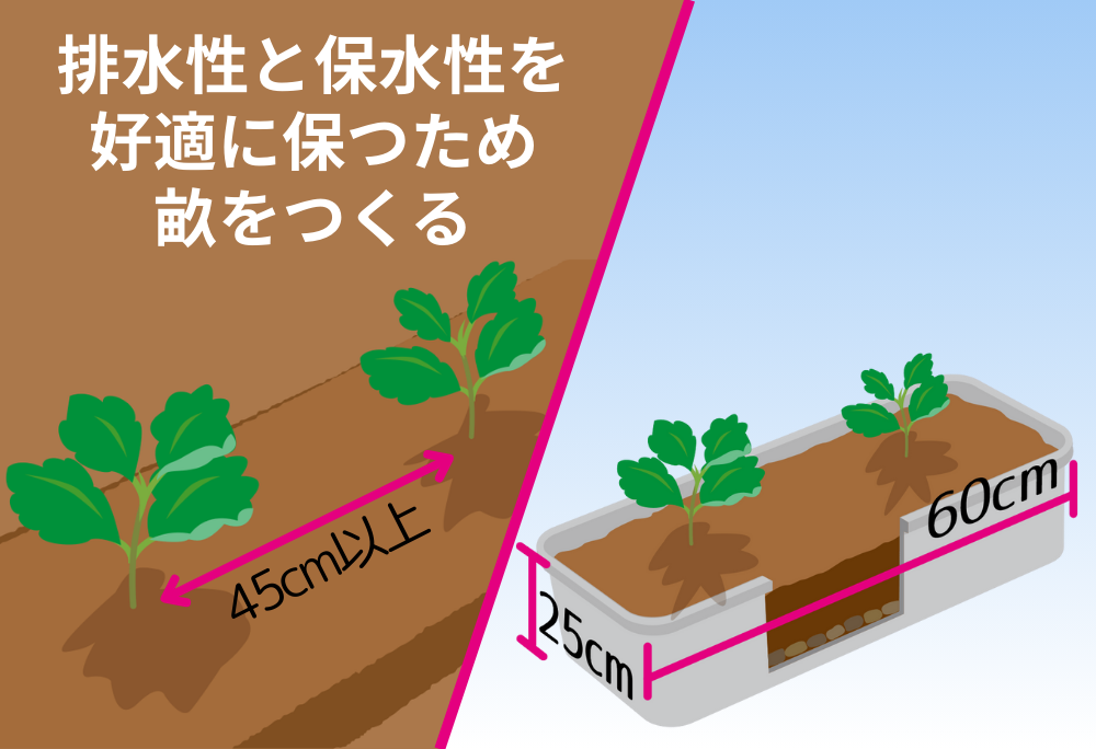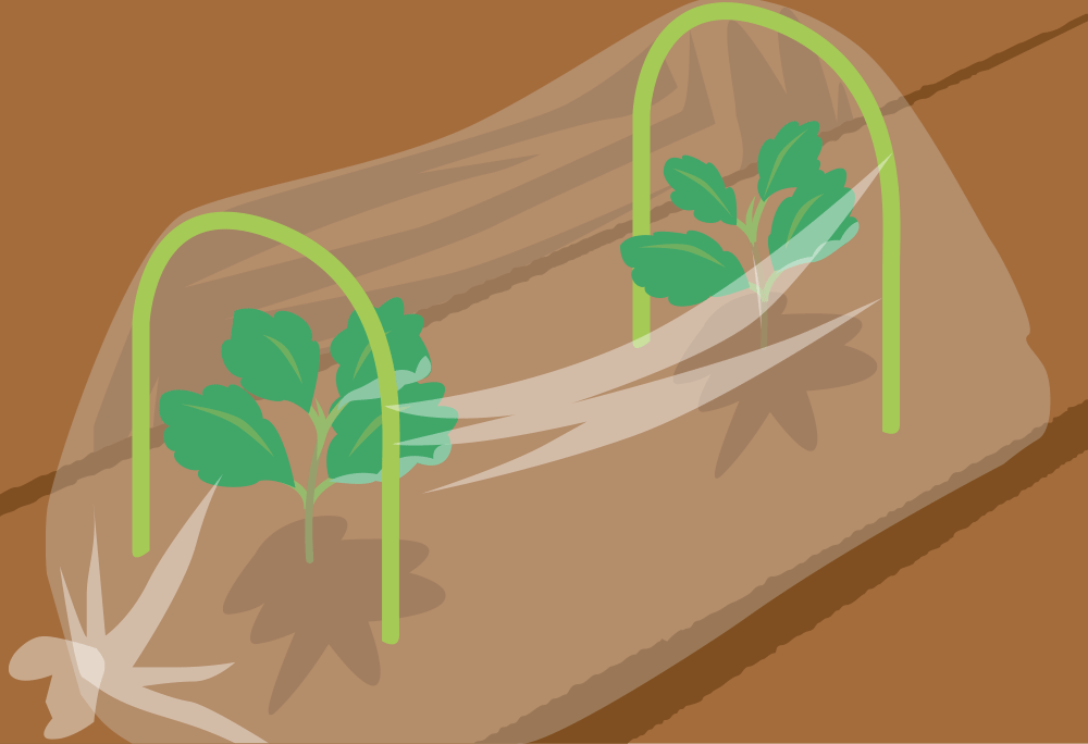 - 生育初期に害虫が付きやすく、食害を受けるとその後の生育に大きな影響を与えます。トンネル状に防虫ネットを張るなどして初期の防除に努めましょう。害虫の侵入が確認されたら、見つけ次第捕殺するか、適応のある殺虫剤を散布しましょう。