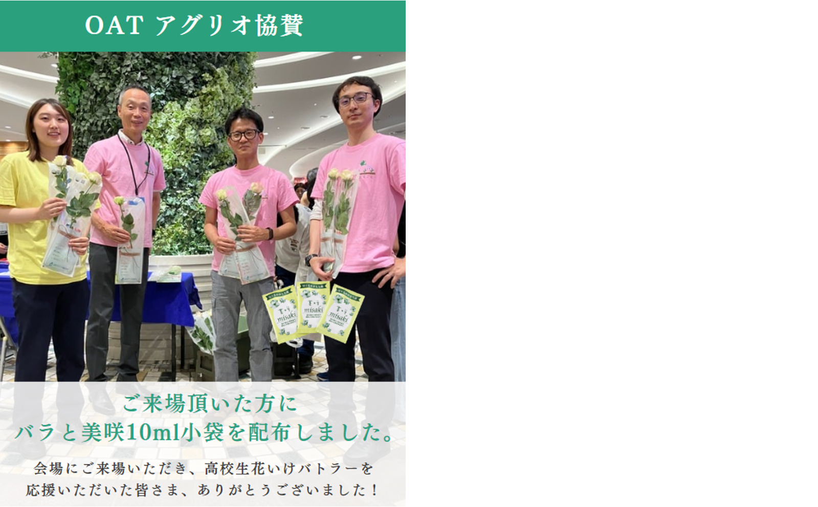 会場では来場者の皆様に、素敵なバラと切り花ながもち液「美咲」10ml小袋をプレゼントさせていただきました🎁
