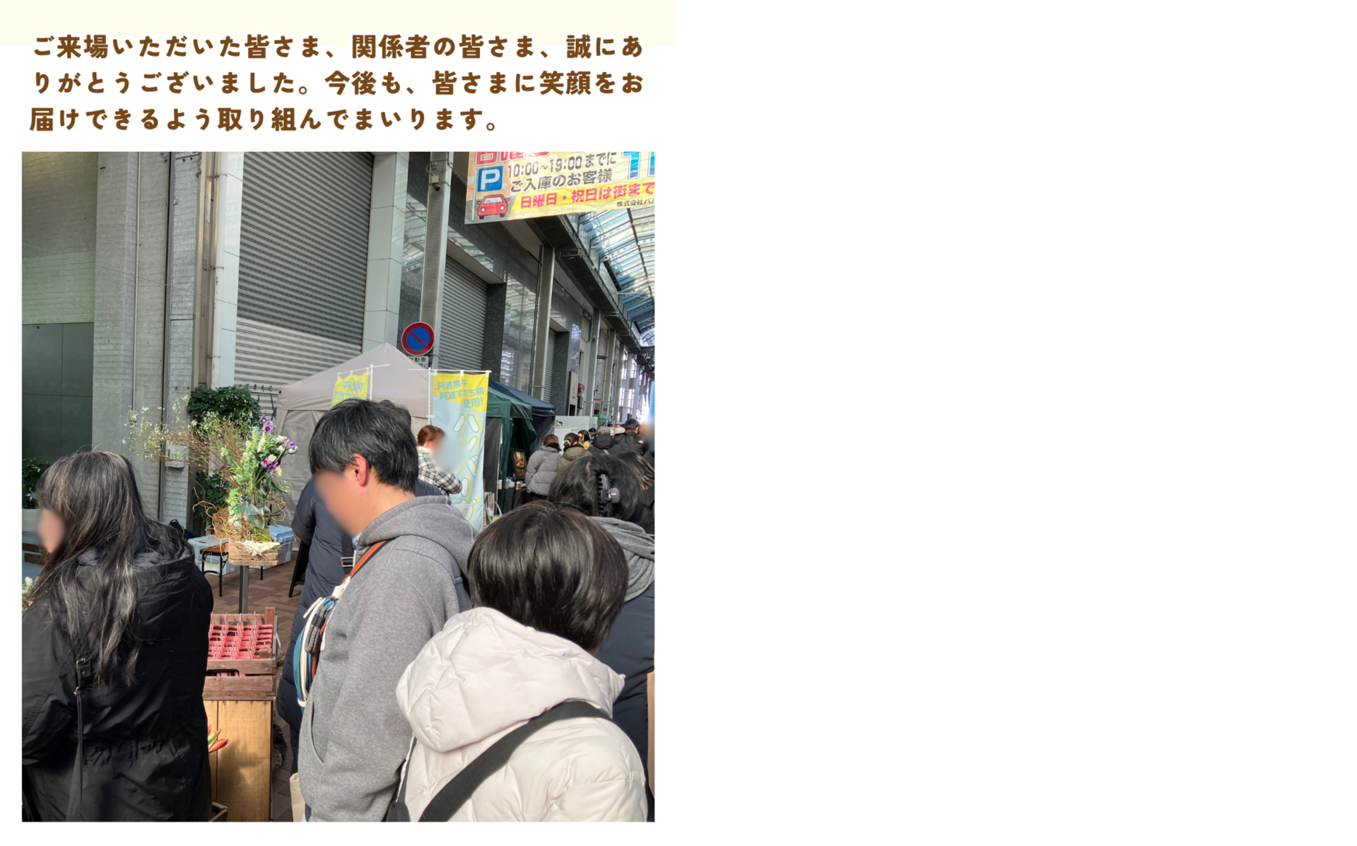 寒い一日ではありましたが、商店街は多くの人で賑わい、たくさんの方に足を止めていただきました。