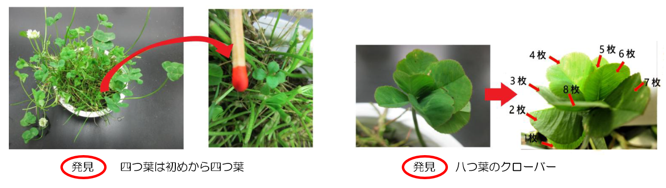 四つ葉のクローバーは三つ葉が四つ葉に変化するのではなく、発生した時すでに四つ葉になっていることが分かった。