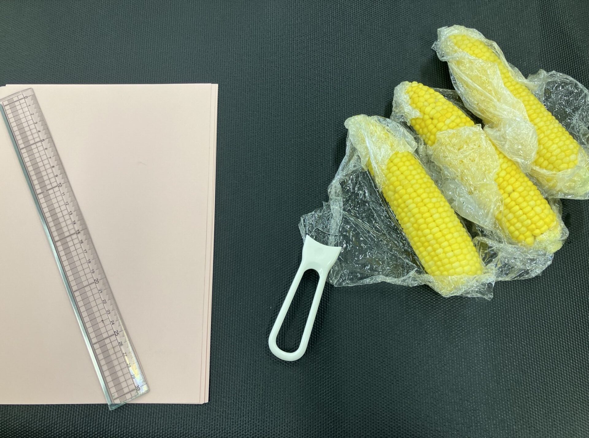 最初に計測した、トウモロコシの長さ・直径と粒数の関係は、今回の結果では分かりませんでした。もう少し数を増やせばなにかしらの傾向がみられるかもしれません。