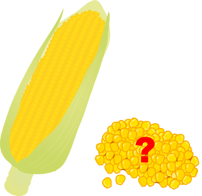 最近、トウモロコシの粒の数は必ず偶数になり、かつそのひげの本数は粒の数と必ず一緒になることを知りました。トウモロコシの粒のもとになる小穂が2つに分裂し、そこからひげが伸びるためとのことです。理論的に間違いないことは明らかですが、自分の目で確かめてみたくなり・・・。そこで、実際に3本のトウモロコシの粒の数を、気合を入れて数えました。