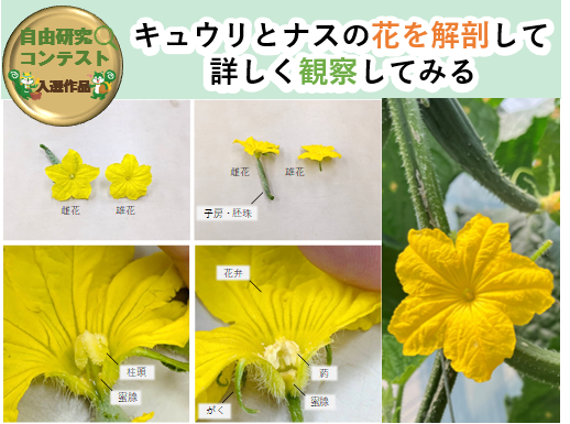 キュウリとナスの花を解剖して詳しく観察してみる